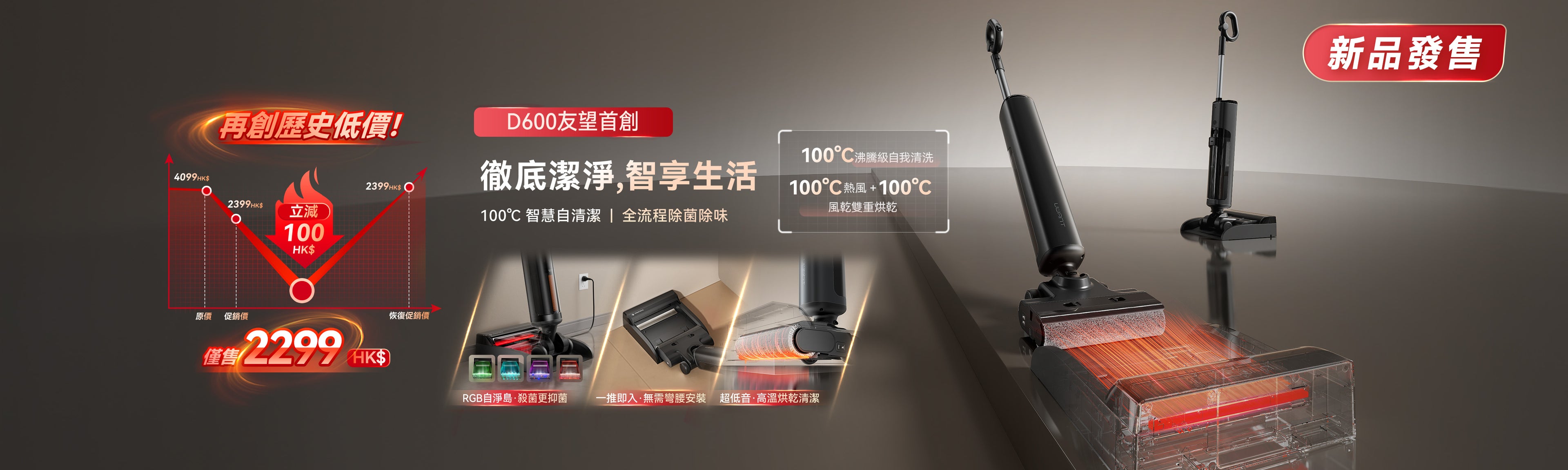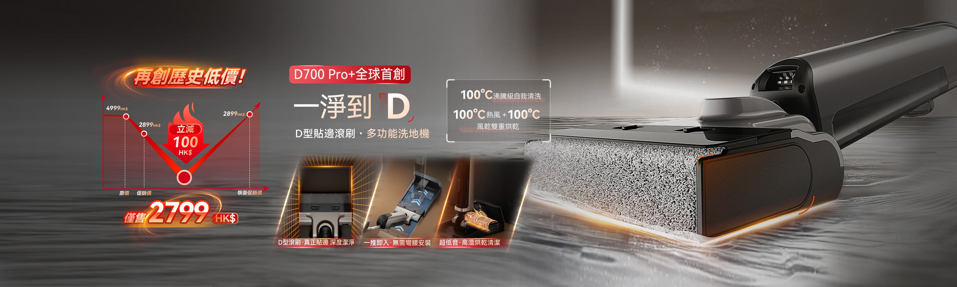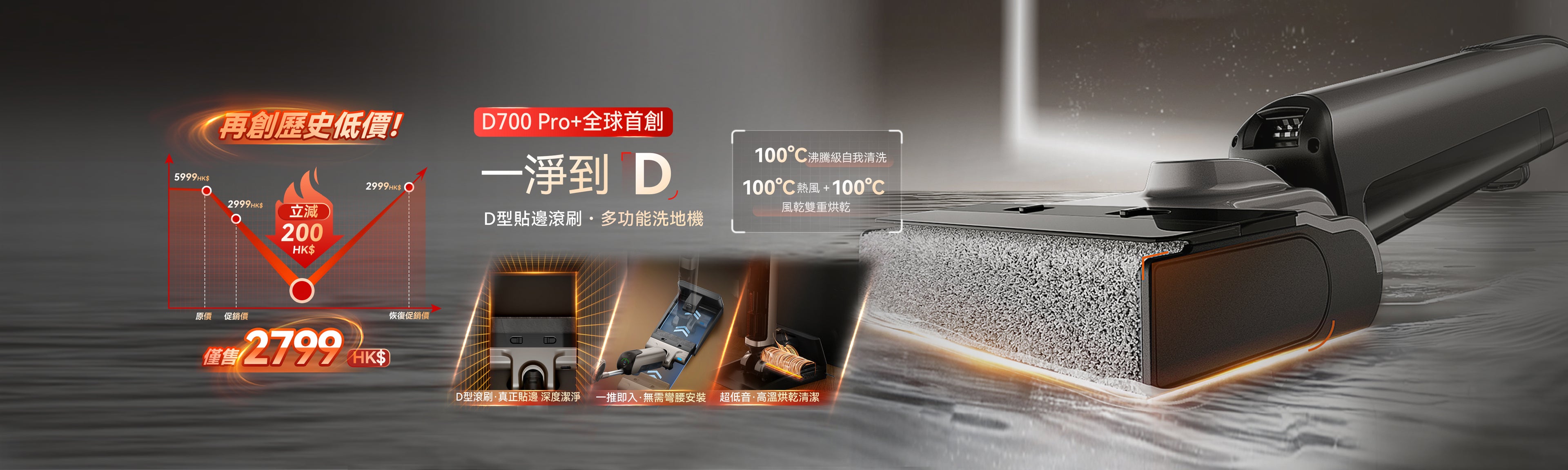 行業首創 D 型滾刷|重塑家居清潔體驗 - UWANT D700 大頭洗地機