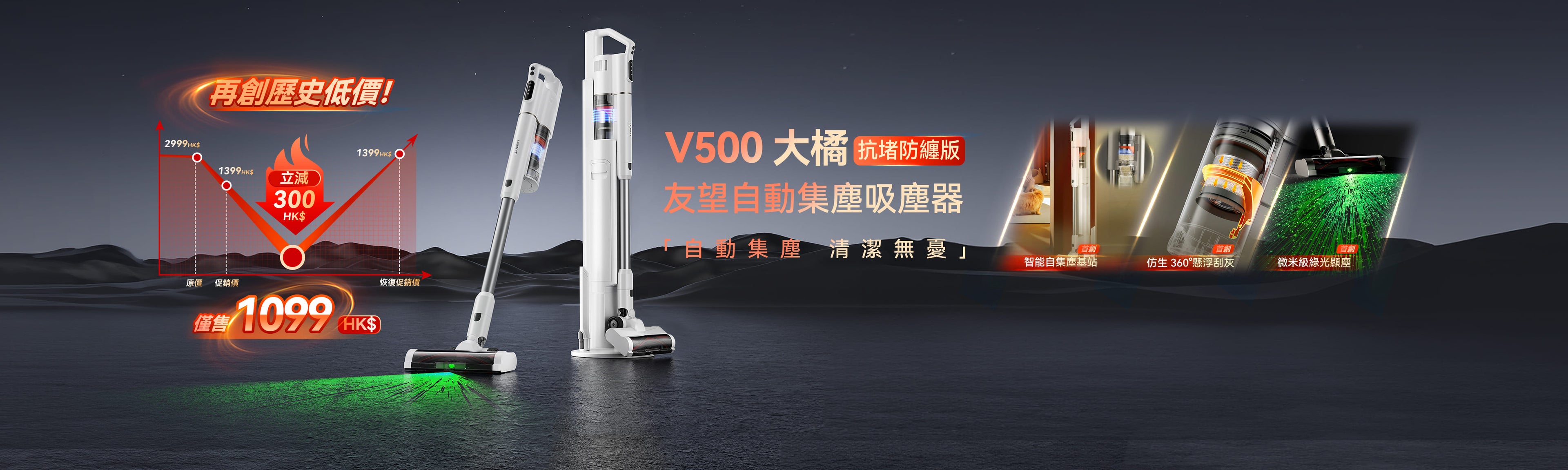 告別手動倒灰,解放雙手!UWANT V500 大橘自集塵吸塵器正式開售!