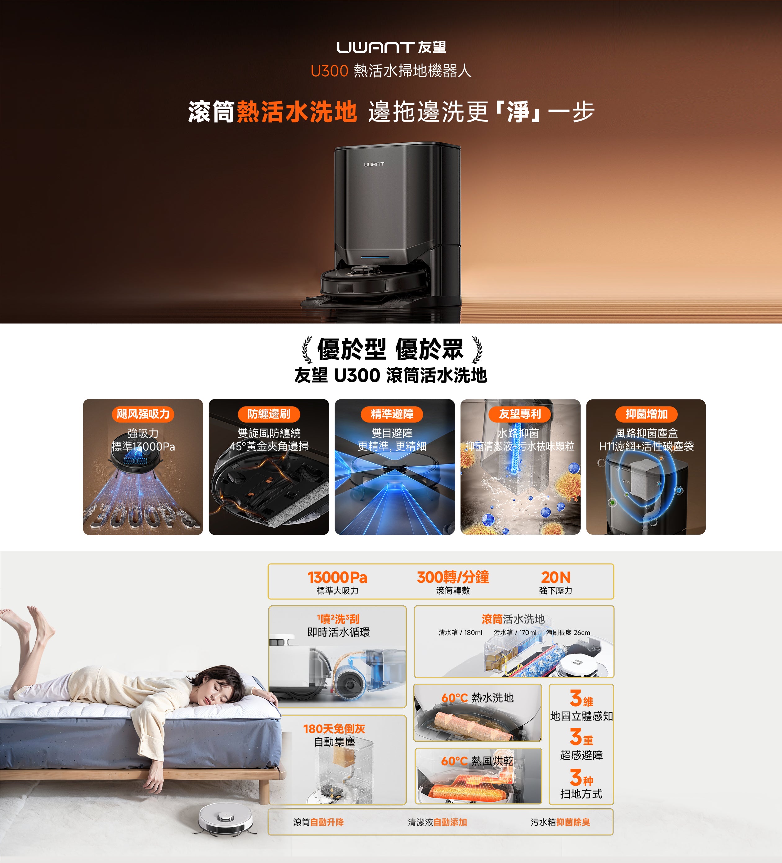經過多家對比,最後揀咗U300,真係好好用!機身好薄,床底同梳化底都入到去,又冇咩聲音,仲有安全智能避障。我屋企洗手間係推拉門,出入完全冇問題,掃同拖都好乾淨,完全就係一個小保姆,徹底解放咗我雙手!